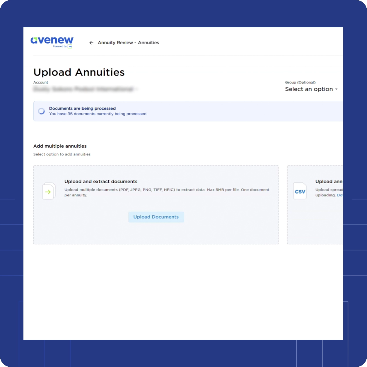 Our teams collaborate to gather comprehensive, accurate data on your existing annuity book of business. This data is uploaded into our annuity analysis engine.
