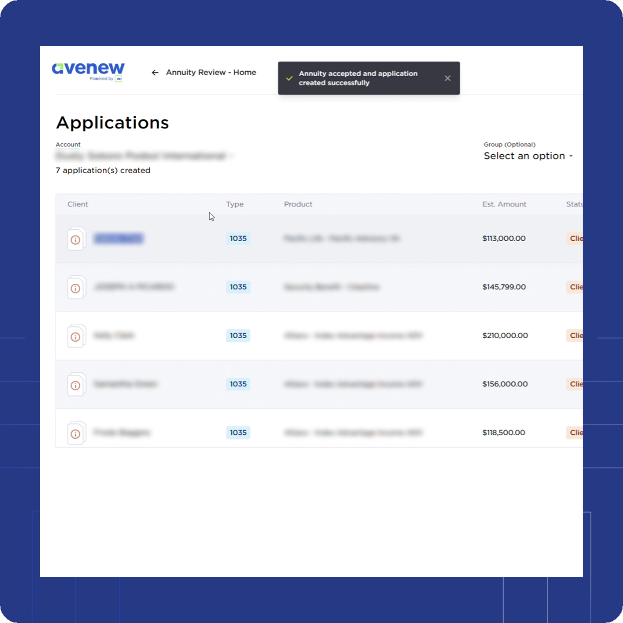 Advisors initiate and complete applications online. Using Smart Application technology, advisors can also share applications with their team and clients for completion.